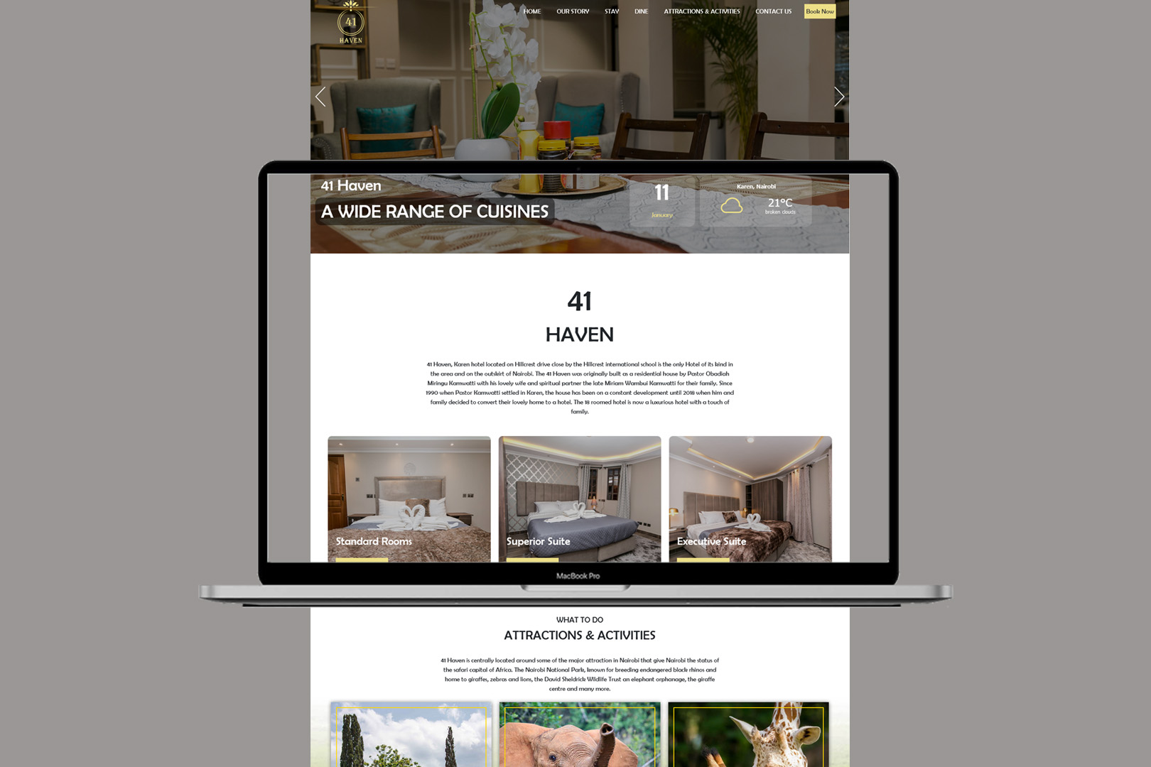 41 Haven, Karen hotel located on Hillcrest drive close by the Hillcrest international school is the only Hotel of its kind in the area and on the outskirt of Nairobi. The 41 Haven was originally built as a residential house by Pastor Obadiah Miringu Kamwatti with his lovely wife and spiritual partner the late Miriam Wambui Kamwatti for their family. Since 1990 when Pastor Kamwatti settled in Karen, the house has been on a constant development until 2018 when him and family decided to convert their lovely home to a hotel. The 18 roomed hotel is now a luxurious hotel with a touch of family.