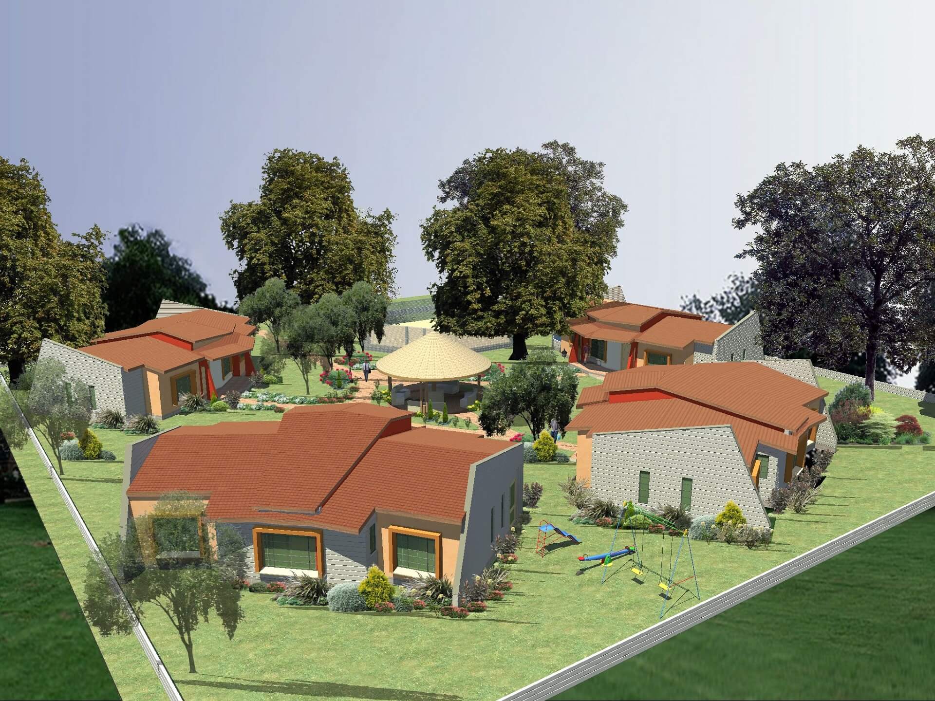 The project is part of the master plan implementation and entails four cottages having the following key spaces, three bedrooms, lounge, dining kitchenette and washrooms. The underlying theme in the design was to provide a homely environment for the children with adequate space for outdoor activities including a gazebo and landscaped gardens to serve as playground.