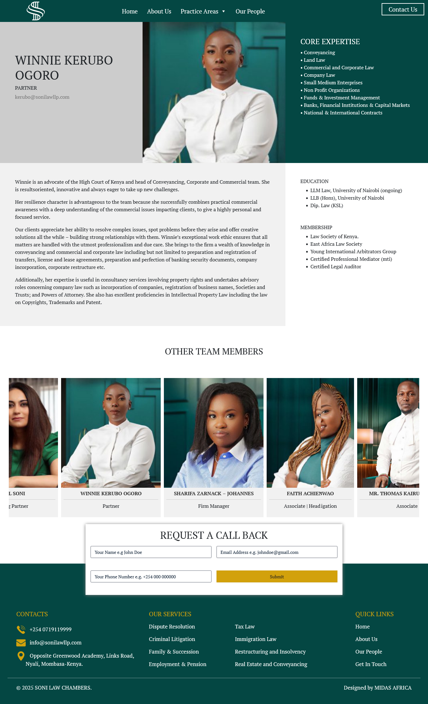 We were engaged by Soni Law Chambers, a leading law firm with offices in Mombasa and Nairobi, to design and develop a modern, professional website aimed at strengthening their online presence and positioning the firm as a trusted authority in the legal industry. The website was crafted to reflect the firm’s credibility, showcase their areas of practice, and provide an intuitive user experience for clients seeking legal services.